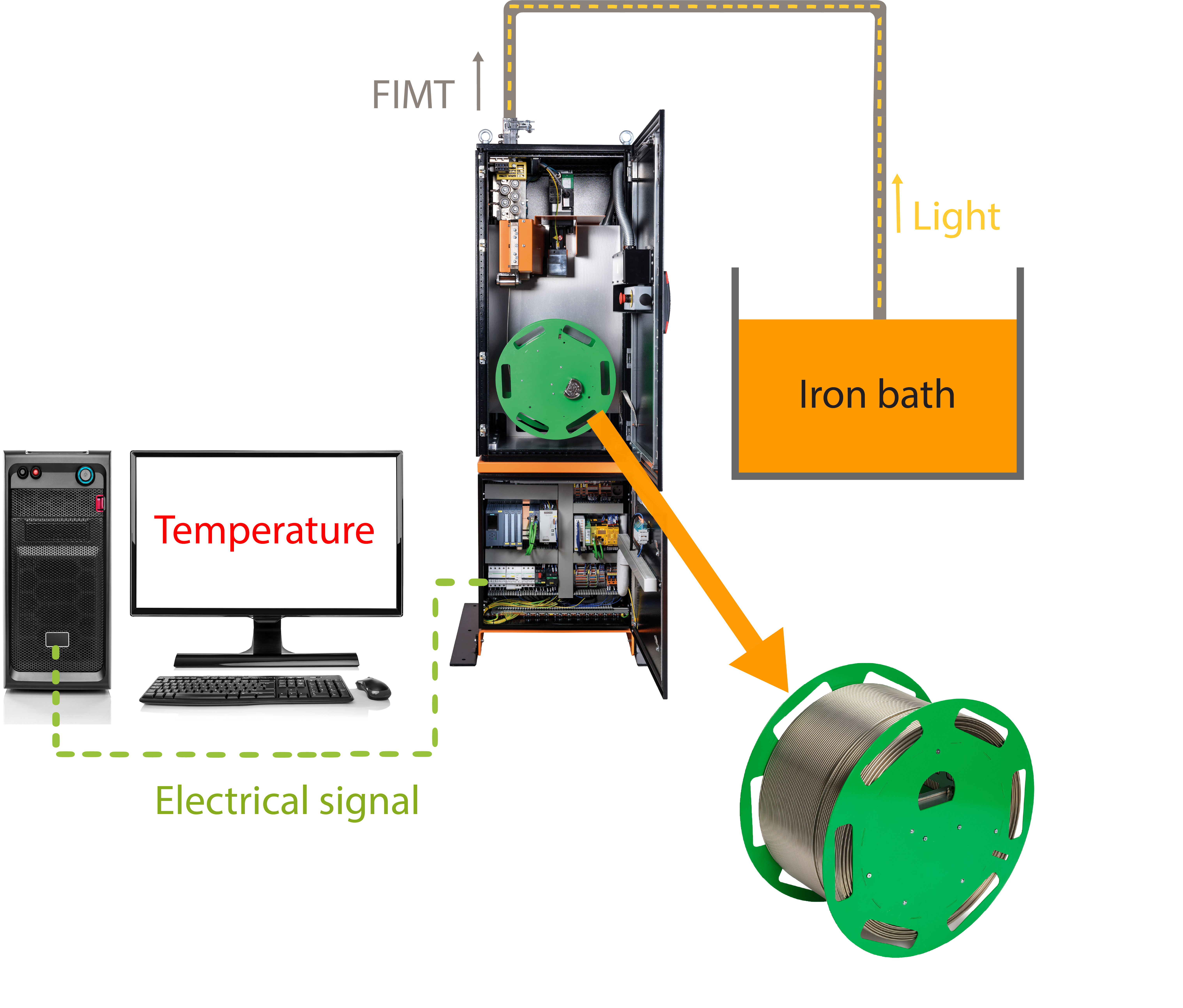 Chameleon Foundry is a precision temperature measurement system designed for foundries, it can measure in the pouring line and ladle. It uses an automated, optical fiber-based measuring system to deliver accurate temperature readings of liquid iron.